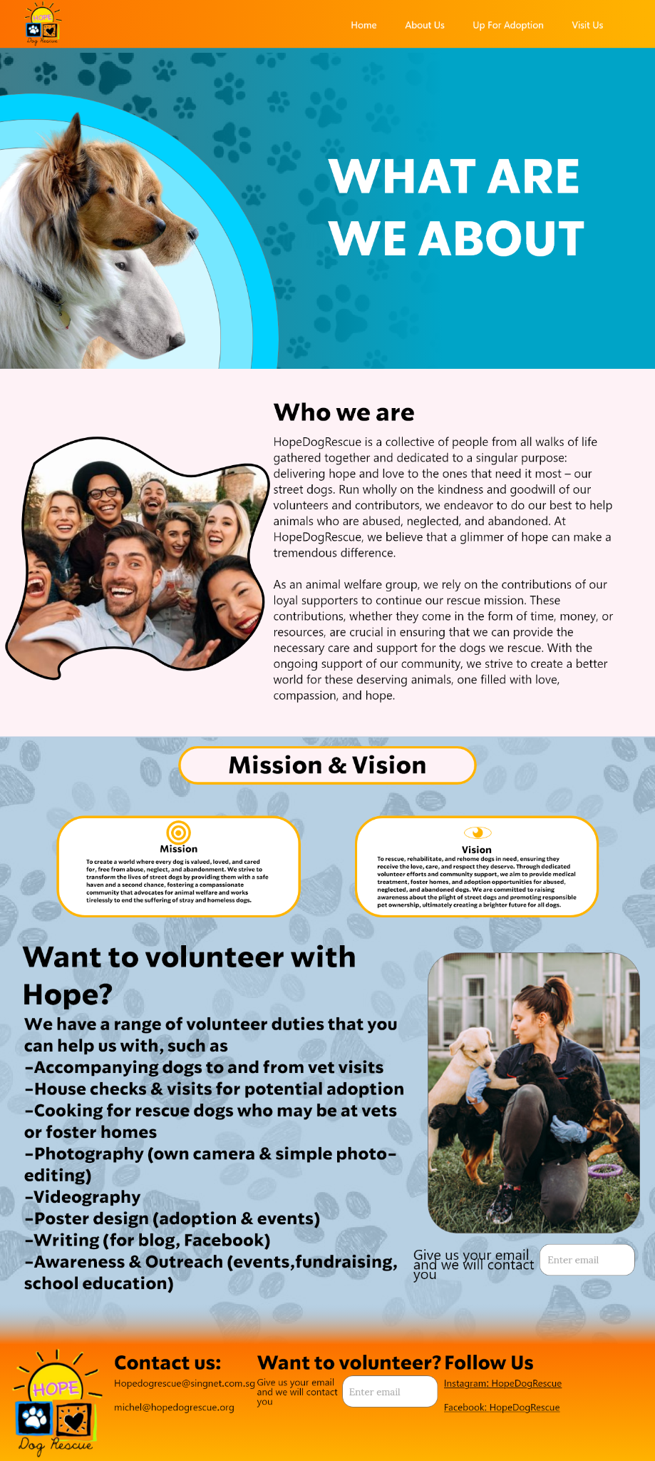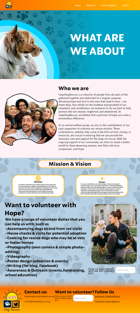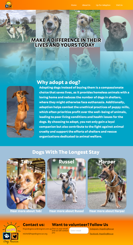 HopeDogRescue is an organisation that had a very bad website design and overall UX/Ui. I took on the task of remaking the website design such that it would be more eyecatching and more user friendly which would allow more people to use the website better