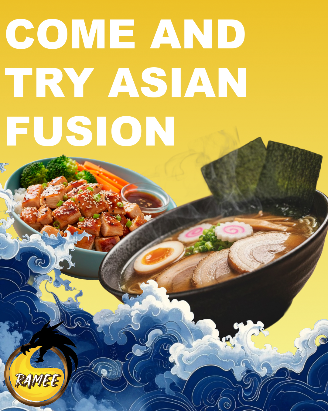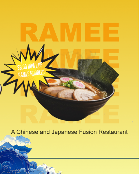 RAMEE is a brand that i came up with for my Graphics Design module combinding Ramen and Mee as in noodles together as a Japanese and Chinese Fusion resturaunt idea because they are my favourite type of food